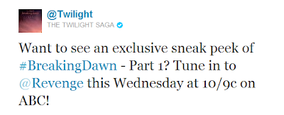 A Twilight hivatalos Twittern kzlte, hogy szerda este a Revenge cm sorozat utn, az ABC csatornn egy j exkluzv jelenetet lthatunk a filmbl!!